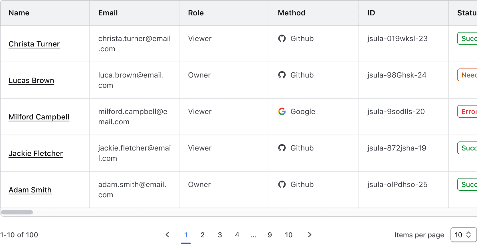 shortdensity. Use this only for text-heavy tables, as it can make them harder to scan. - For a smaller dataset, e.g., basic user data, consider using the